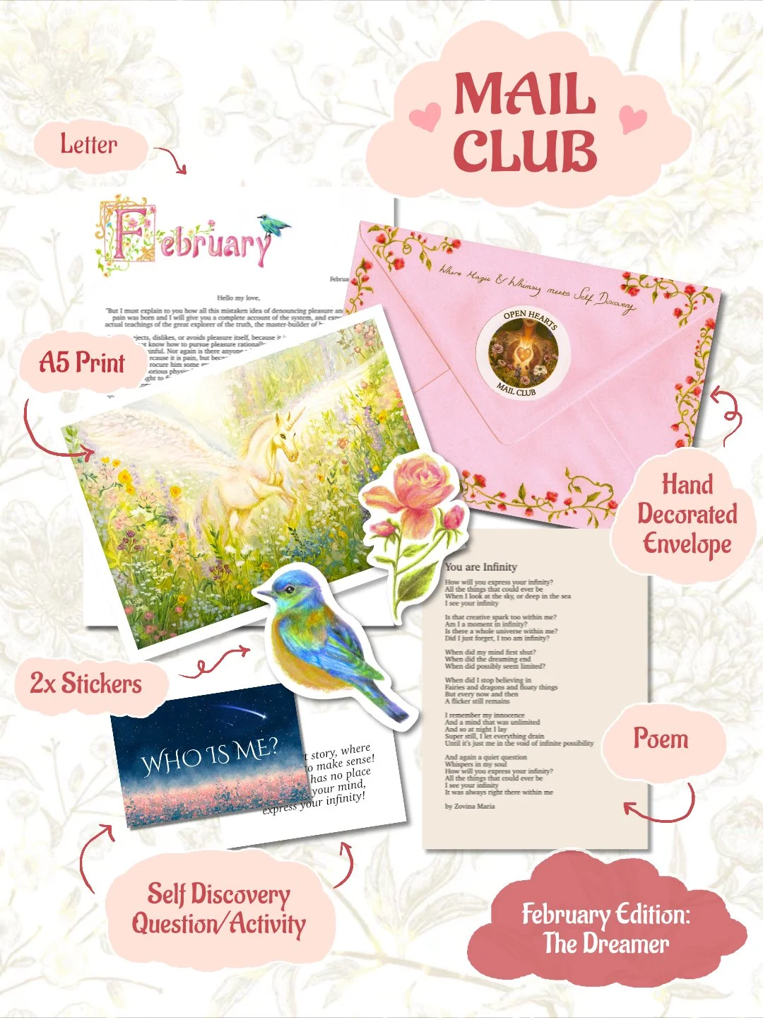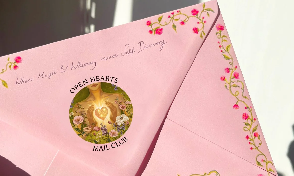 My mail club is all about whimsy & self discovery! I would love to have you as part of Open Hearts Mail Club and be your monthly penpal!